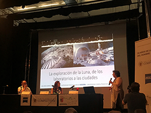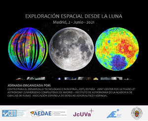Jornada sobre la Exploración de la Luna organizada por el Centro para el Desarrollo Tecnológico e Industrial (CDTI, España), Joint Center for Ultraviolet Astronomy (Universidad Complutense de Madrid y el Instituto de Astronomía de la Academia de Ciencias de Rusia) y la Asociación Española de Derecho Aeronáutico y Espacial (AEADE, España). Ir a la página de la Jornada